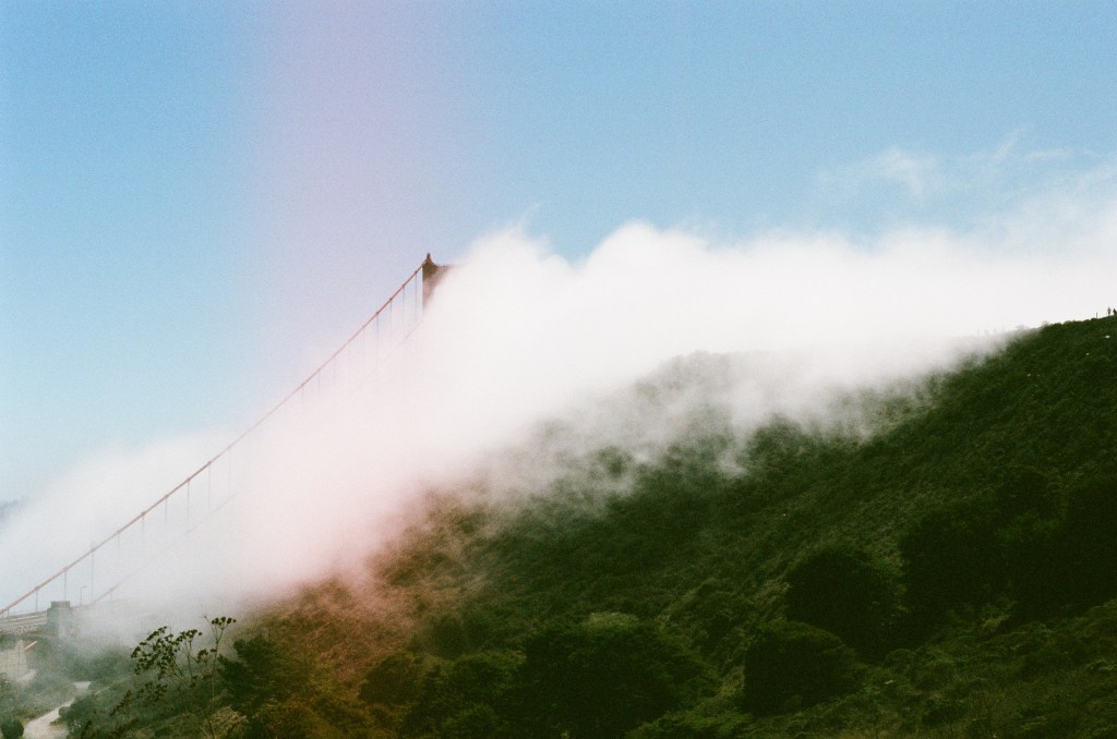 The scramble took so much out of me it was hard to enjoy the Marin Headlands portion of the hike. There was also another pretty serious uphill portion here, but you do get some nice views. Walking across the bridge is pretty miserable. I’m not a huge fan of heights, and with fast road bikers, tourist bikers with selfie sticks out, and people sharing a pretty narrow path, I just wanted to get to the other side as fast as possible. It didn’t help that (of course!) the bridge was completely fogged in.